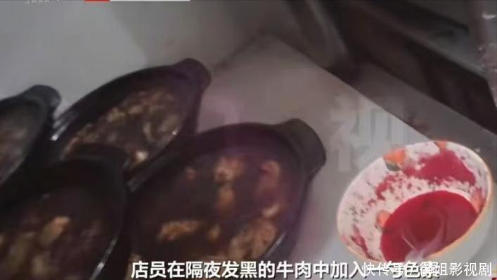 杨铭宇黄焖鸡,给发黑牛肉放色素;